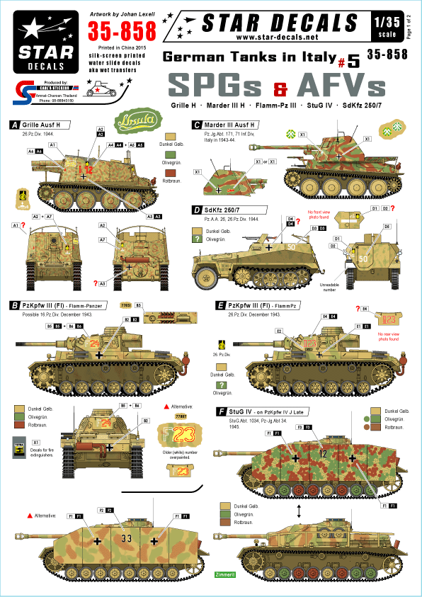 Grille Ausf H, Marder III Ausf H Flamm-Pz III, StuG IV, SdKfz 250/7.