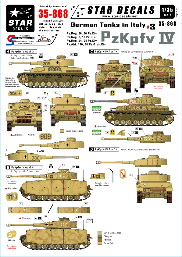 PzKpfW IV. Pz.Regiment 26/ 26 Pz.Div, Pz.Regiment 2/ 16 Pz.Div. Pz.Regiment 24/ 24 Pz.Div. Pz.Abt. 190/90 Pz.Gren.Div.