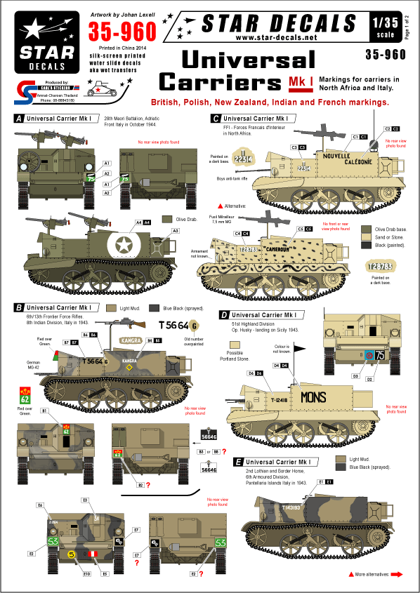 Universal Carriers in North Afriva and Italy. British, Polish, New Zeeland, Indian and French markings.