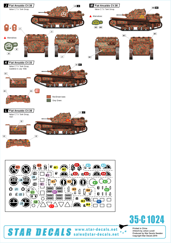 Nationalist (Italian CTV and Spanish Legion) markings. CV.33, CV.35, CV.33 Lf Flamethrower tank.