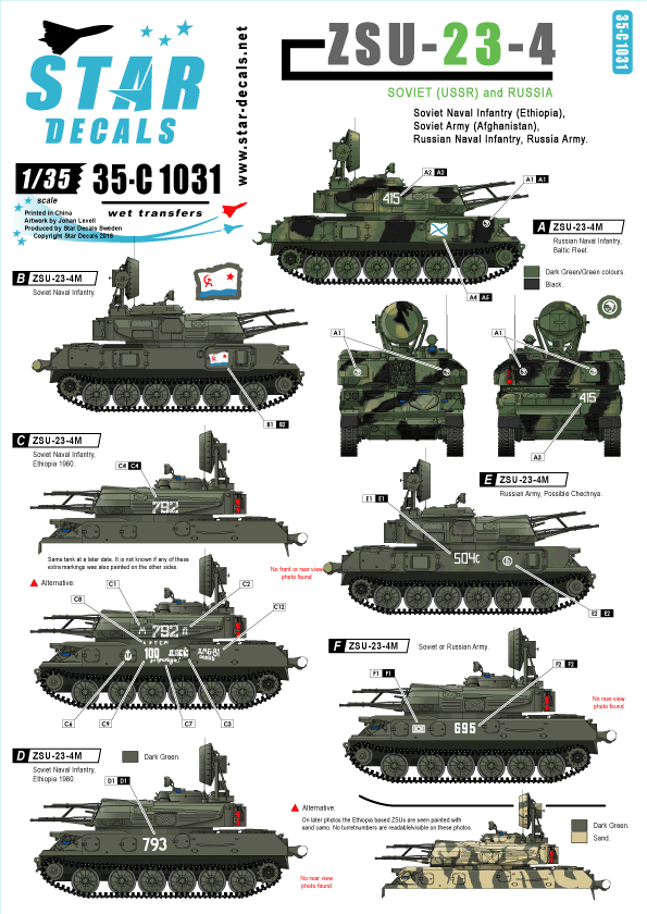 Soviet Naval Infantry in Ethiopia, Soviet Army in Afghanistan, Russian Naval Infantry and Russian Army.