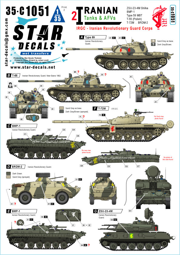 Iranian Tanks & AFVs # 2 Iranian Revolutionary Guards in the 1980s Iraq-Iran War. T-54, T-55, T-72M, BMP-1, ZSU-23-4, BRDM-2.