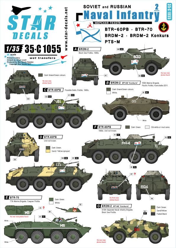 Soviet and Russian BTR-60PB, BTR-70, BRDM-2, BRDM-2 Konkurs, PTS-M.