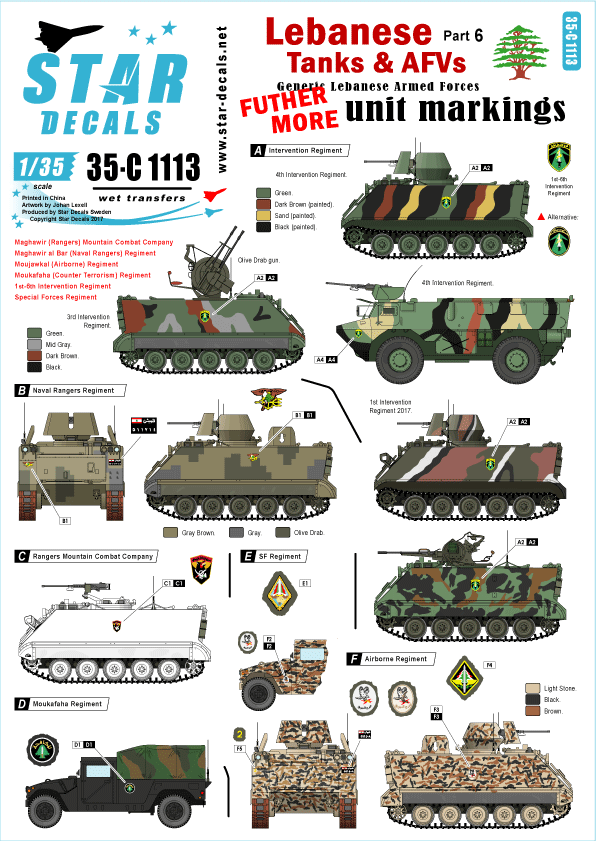 Generic Lebanese Armed Forces unit markings. Lebanese Tanks & AFVs 6. Elite units, and Intervention Regiment.