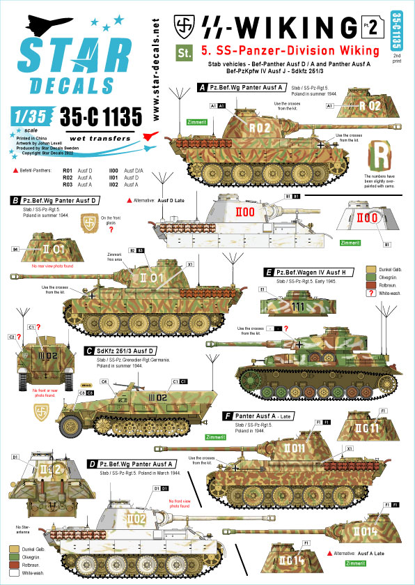 SS-Wiking # 2. 5. SS-Pz.Div. Wiking. Stab (HQ) vehicles. Panther Ausf A, Bef-Panther Ausf D and A, Bef-PzKpfw IV Ausf H, SdKfz 251/3.