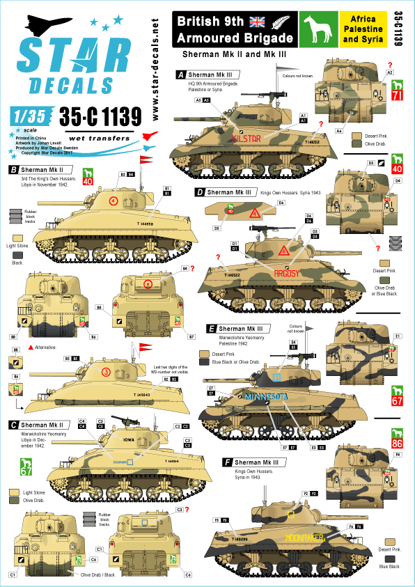 Sherman Mk II and Mk III in North Africa and Middle East 1942-43.