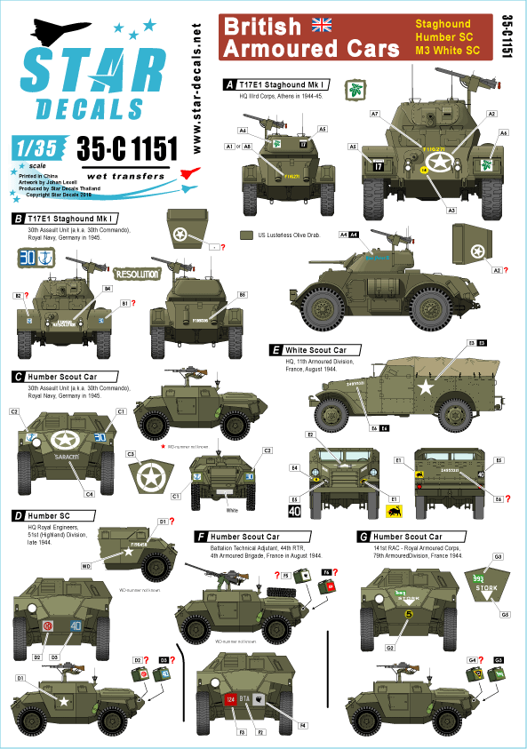 Staghound, Humber SC and White Scout Car. NW Europe and Greece.