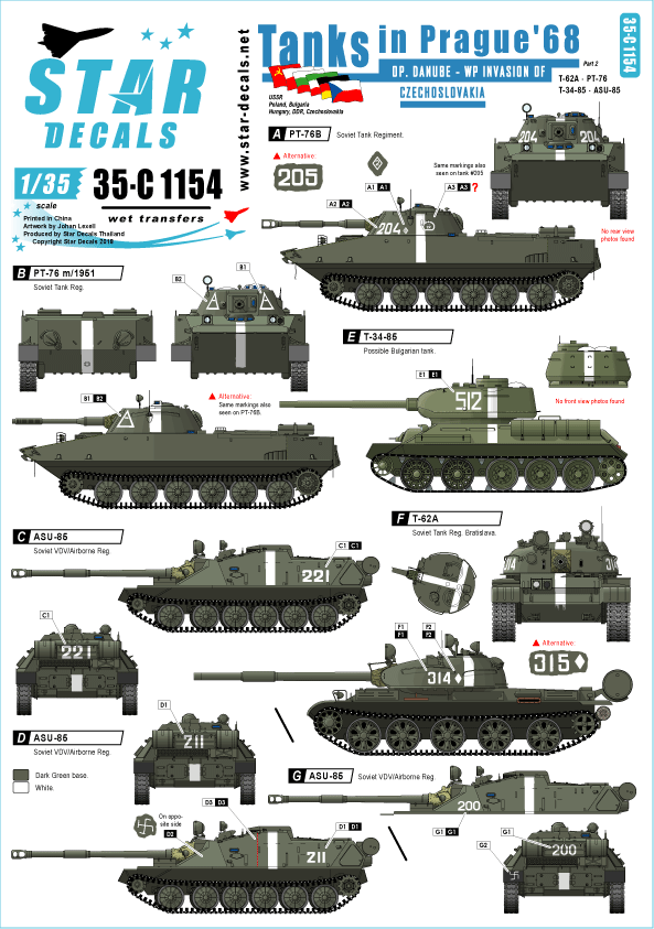 T-62A, PT-76 m/1951, PT-76B, T-34-85, ASU-85.