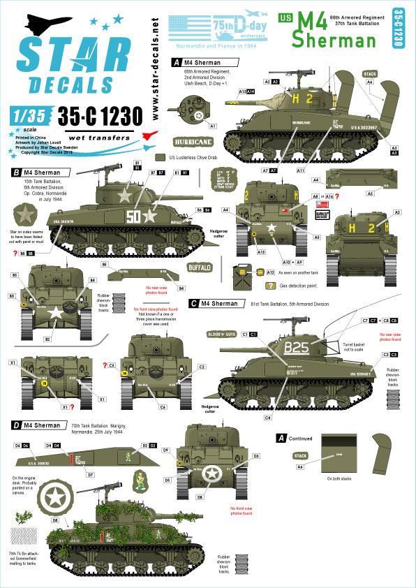 US M4 Sherman. 75th-D-Day-Special.Normandy and France in 1944.