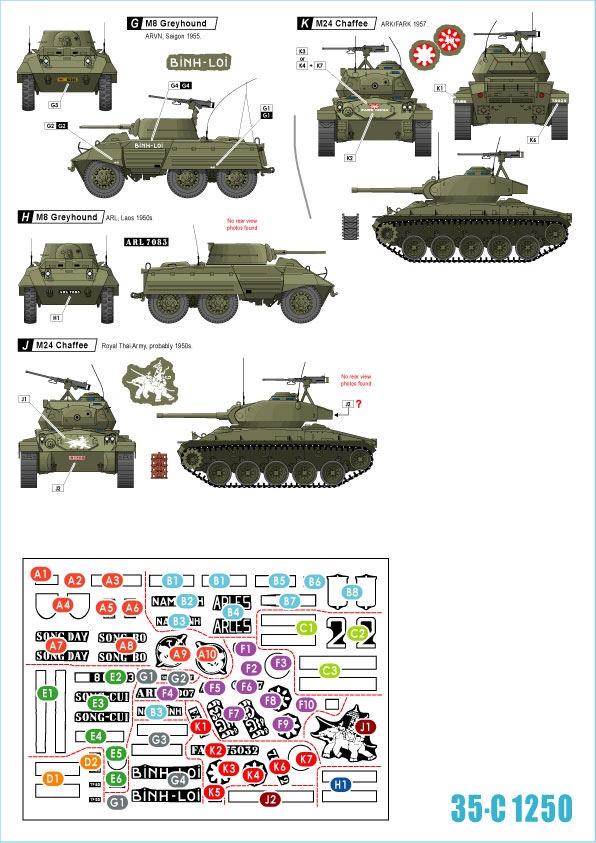 South East Asia 1950s. Tanks and AFVs in Vietnam (VNA and ARVN), Laos, Cambodia and Thailand. M8 Greyhound, Panhard AML 178, M3A1 Halftrack, M24 Chaffee, M8 HMC, CMP C15TA, M3A1 Scout Car.