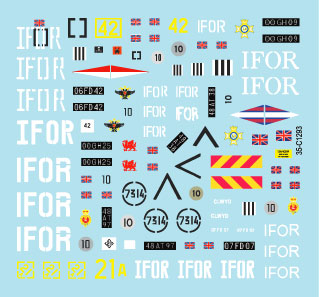 Balkan Peacekeepers # 11. British Scimitar CVR(T) in Bosnia. IFOR markings. FV107 Scimitar, FV103 Spartan and FV105 Sultan.