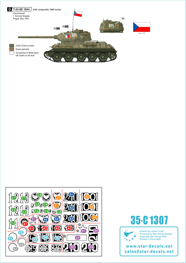 T-34-85 Medium Tank. Polish, Jugoslav and Czech Red Army tanks. 1st Polish Armoured Brigade, Czechoslovak 1st Armoured Brigade and Jugoslav 2nd Armoured Brigade.
