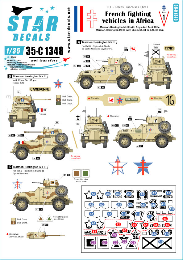 French Fighting Vehicles in Africa # 1. FFL - Forces Francaises Libres. Marmon Herrington Mk III with Boys Anti-Tank rifle, Marmon Herrington Mk III with 25mm SA 34 or SAL 37 gun.