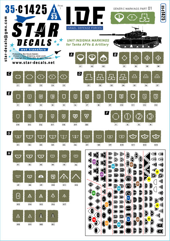 Israeli brigade/unit insignia markings for tanks and AFVs.