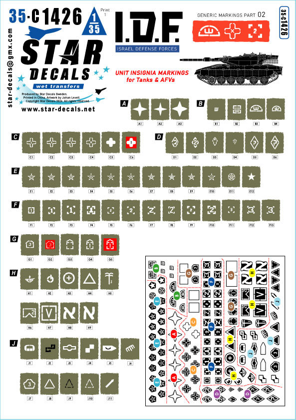 Israeli brigade/unit insignia markings for tanks and AFVs.