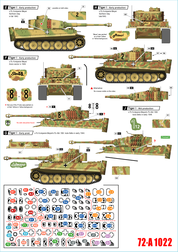 German tanks in Italy # 2. Tigers. Tiger I Early prod., Tiger I Mid prod.,Tiger I Late prod. and Tiger I Funklenk (Fkl).