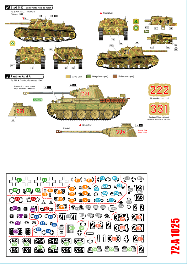 German tanks in Italy # 5. Cassino 1944. Battle for Cassino 1944. PzKpfw IV Ausf H, M4A1 Sherman, StuG III Ausf G, Marder III Ausf H, Panther Ausf A, Pz-Jäger Nashorn, StuG M42 Samovente M42 da 75/18 and 75/34.