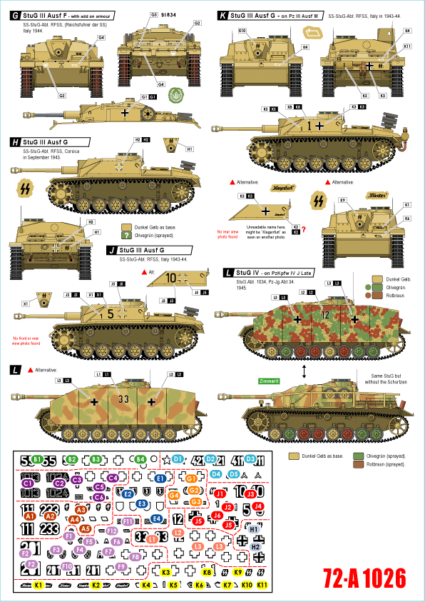 German tanks in Italy # 6. Sturmgeschutz. StuG III Ausf F/8, StuG III Ausf G, StuH 42 Ausf G and StuG IV.