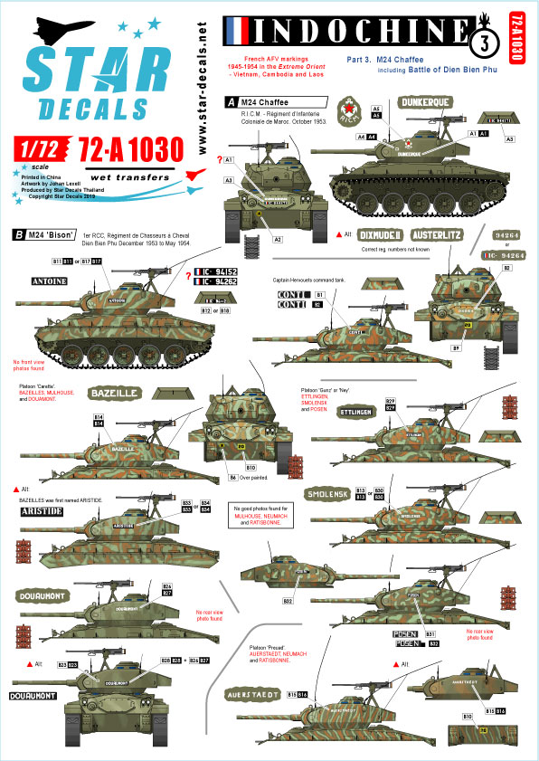 Indochine # 2. M24 Chaffee / Bison. 1er Regiment de Chasseurs in Dien Bien Phu, R.I.C.M., 1er R.C.C.and other units.