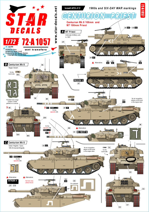 Israeli AFVs # 2. Centurion Mk V 105mm and M7 Priest 105 mm Howitzer. 1960s and Six-Day War markings.