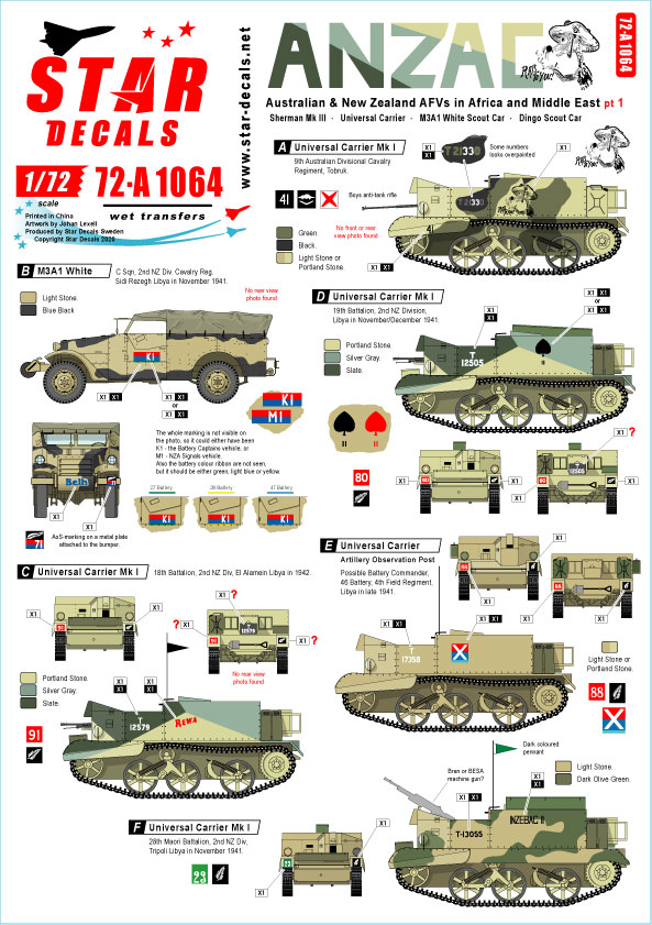 ANZAC # 1. New Zealand and Australian tanks and AFVs in Africa and Middle East WW2. Sherman Mk III, Universal Carrier, M3A1 White Scout Car, Dingo Scout Car.