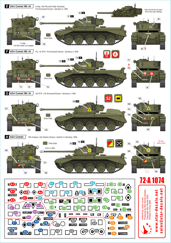 Comets. British A34 Comet in WW2 and Cold War service. Germany WW2, Germany post war BAOR, Hong Kong.