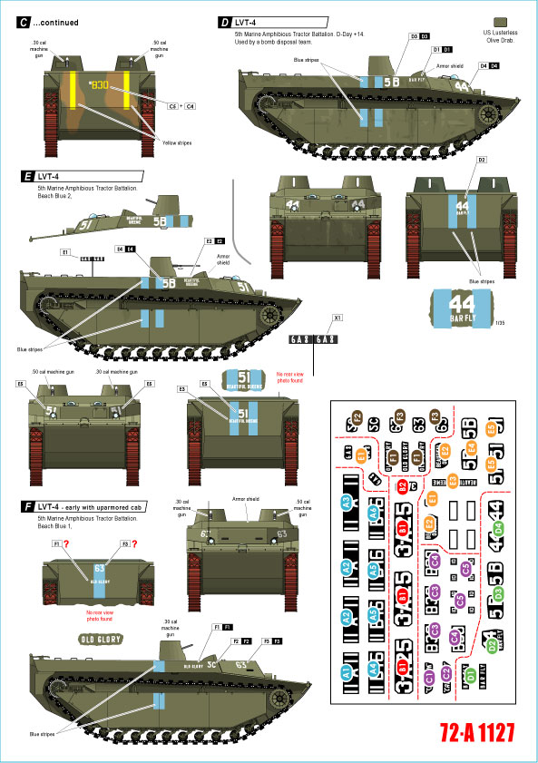 US PACIFIC WARS - IWO JIMA USMC LVT-4 Amtracks. 3rd Marine Amphibious Tractor Battalion, 5th Marine Amphibious Tractor Battalion, 10th Marine Amphibious Tractor Battalion, 11th Marine Amphibious Tractor Battalion in February 1945.