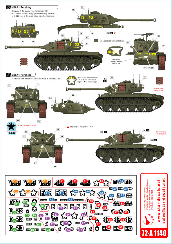 Korean War 1950-53 # 1. USMC Tanks. Sherman and Pershing. M4A3 105mm Dozer, M4A3 Flame-tank, M4A3 'Porcupine' M26A1 Pershing.