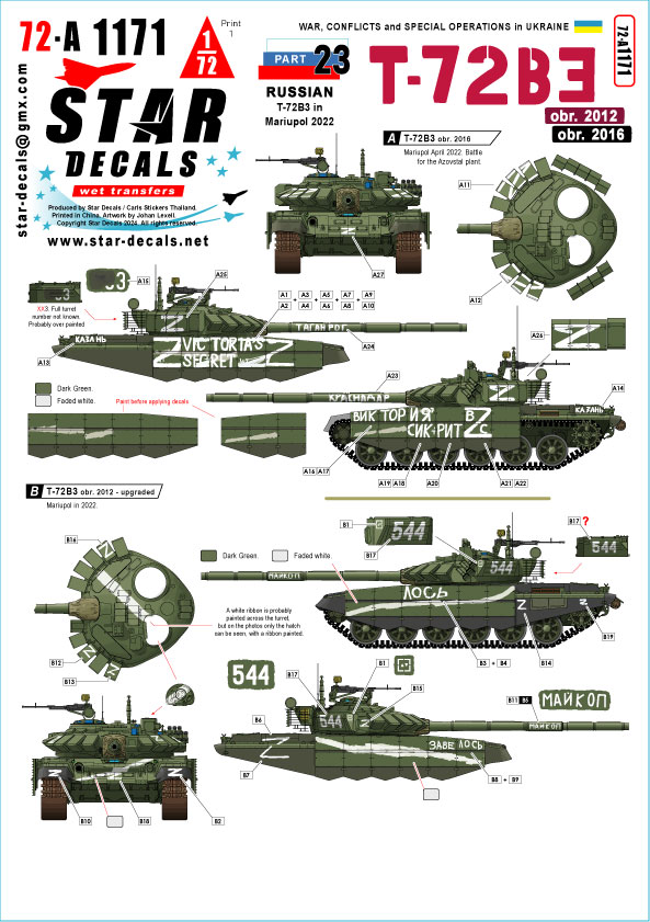 Russian T-72B3 in Mariupol 2022.