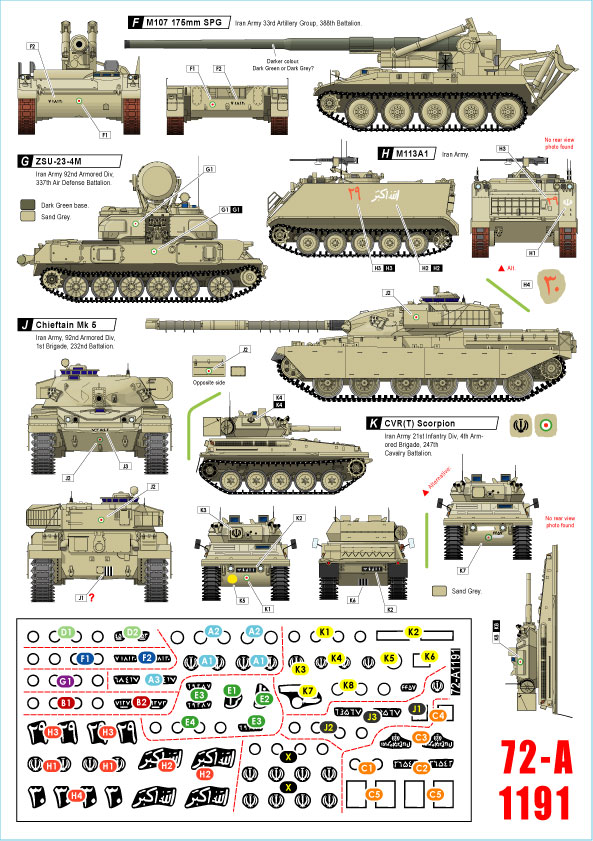 Iranian Tanks and AFVs # 1 Iran Army during the Iraq-Iran War 1980s. M60A1 Patton, Chieftain Mk 5, M107 175mm SPG, BTR-50PK, ZSU-23-4M Shilka, M113A1, M577 Command Post, CVR(T) Scorpion.